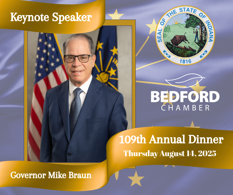 “We look forward to hearing from Governor Braun as he addresses the people and businesses who form the backbone of local economies right here in Bedford, Indiana,” reads a press release from the Bedford Chamber.