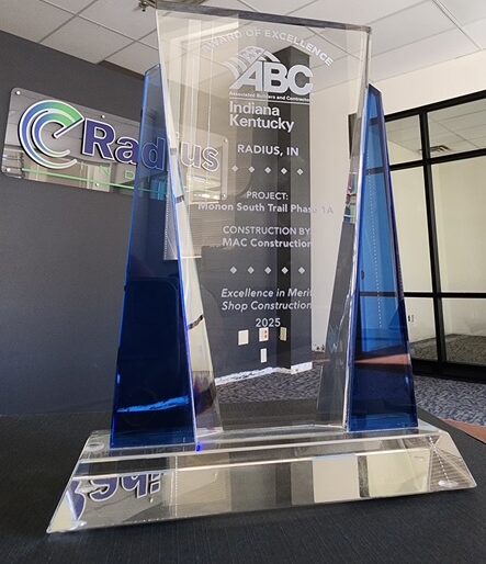 The award was presented at the ABC Excellence in Construction Gala held at the Indiana Roof Ballroom in Indianapolis Sept. 25. MAC shared the award with Radius Indiana, trail developer, and the engineering and design team at Clark Dietz.