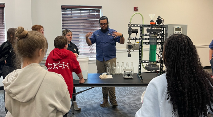 Students toured Pluto Corporation, AnoPRO LLC, National Water Services, Envision Designs and Jasper Group, where they explored real-world applications of innovation, technology and skilled trades. The students were split into groups and each group was able to tour two businesses.