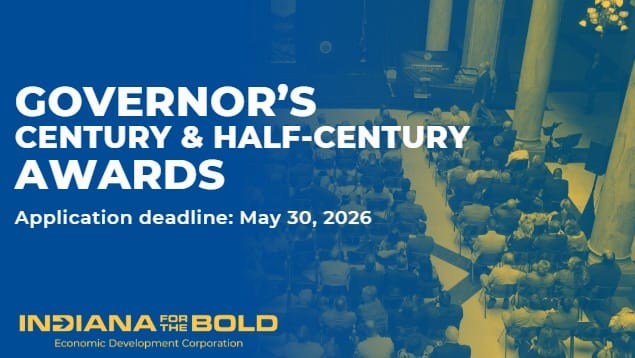 The state of Indiana is accepting nominations for the Governor’s 2026 Century and Half Century Business Awards, which honor Hoosier businesses that have remained in operation for at least 100 or 50 years, respectively, and have demonstrated a commitment to serving the community.
