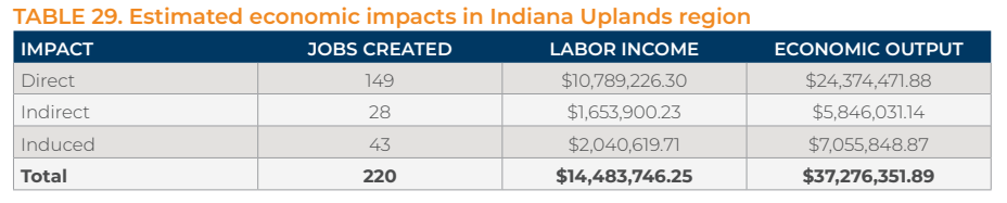 In the Indiana Uplands region, which includes seven counties in the Radius Indiana region, the analysis revealed that READI 1.0 funds generated more than $37 million in total regional economic impact. The impact included over $14 million in estimated labor income.